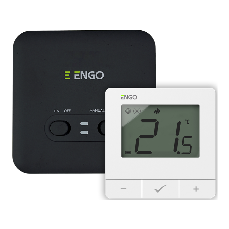 ENGO Термостат, безжичен, на батерии,бял, свързва се директно с WiFi мрежата (приложение ENGO/ TUYA) захранване приемник на 230V, подходящ за подово, отопление / охлаждане